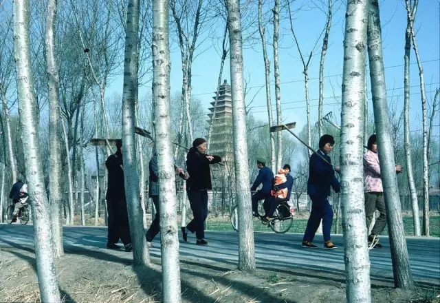 1980年,河南,洛阳。据说,白马寺是中国东汉时期修建的第一座佛教寺庙,寺庙的名称是指从印度带来佛经的一匹白马。白马寺旁,农妇朝着田地的方向走去。