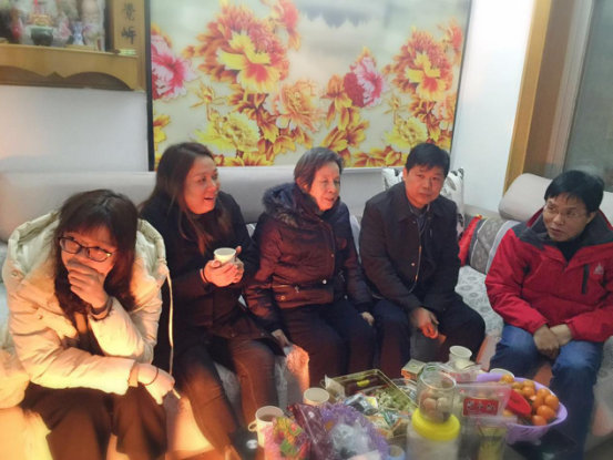 大年初五,曾经的学生来给老师拜年。中间为董昌枝老师。