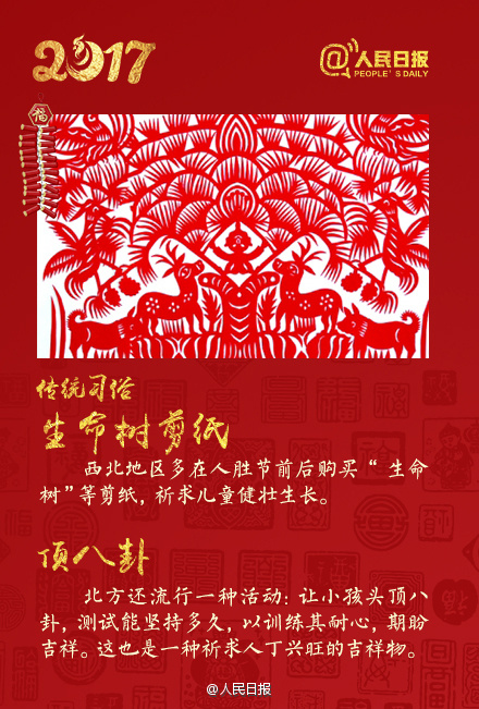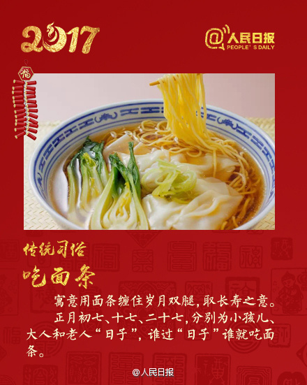 今天是正月初七,中国民俗把这一天叫做“人日”。“人日”源于古老的创世神话传说。上天创造万物的顺序为:正月初一到初八,一鸡二狗、三猪四羊、五牛六马、七人八谷。初七这天,要将7种菜合煮为羹。“羹”与“更”谐音,意味着更新之意。你们家今天有啥习俗?