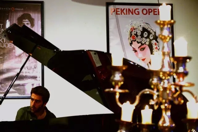 在荷兰海牙卢森特舞蹈剧院,一位音乐人在答谢晚宴上弹奏钢琴。(2013年5月21日)
