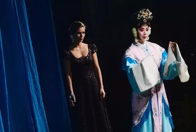 在意大利米兰皮可洛剧院,两位京剧演员在后台交谈。(2013年5月30日)