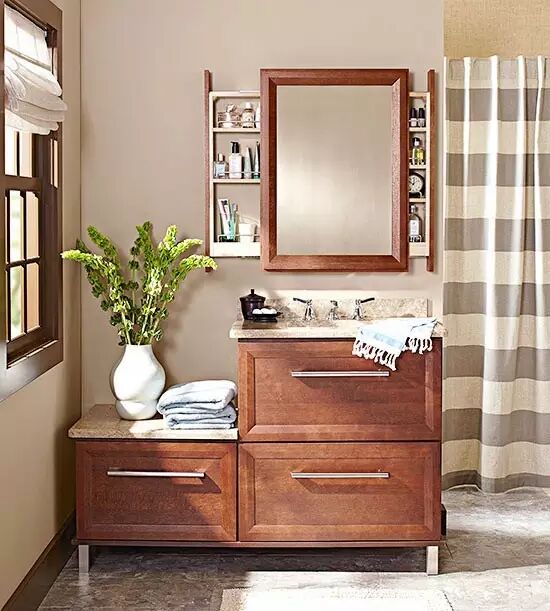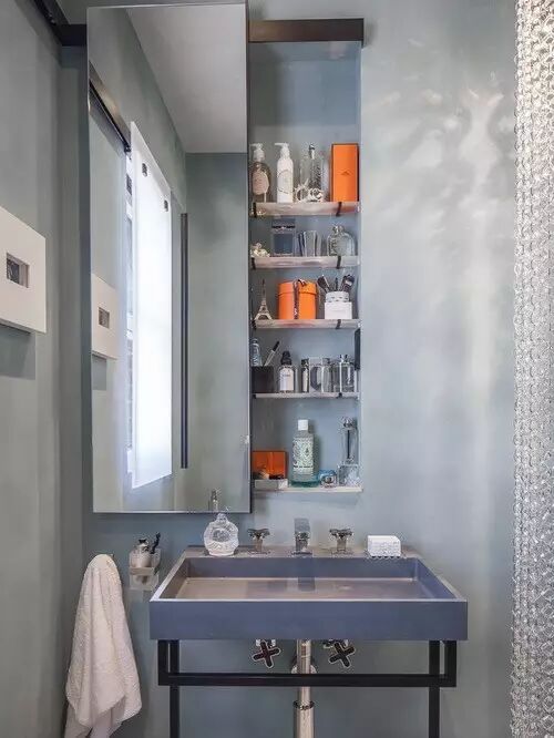 你还可以自己安装一些嵌入式收纳板,别小看这点空间,洗发水、沐浴液什么都能装得下,瓶瓶罐罐放在柜子里,再也不用堆满整个洗漱台。