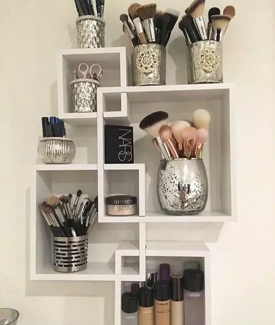 梳妆台的柜子,要注意选择合适的层高,有序又紧密地布置起来,也能装很多东西。