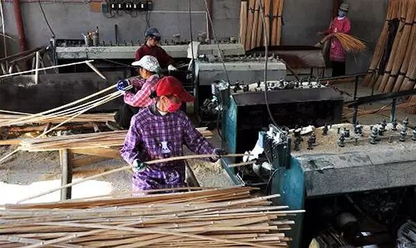 接着就是根据产品需要的长度对竹子进行分段,粗加工成竹段。