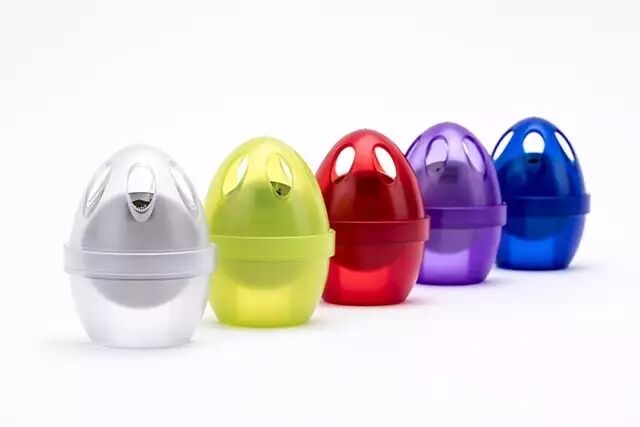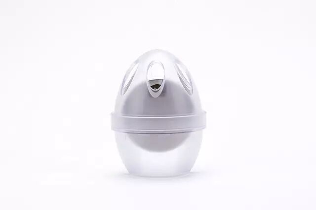它的设计非常简单,由一个蛋形塑料外壳和一块不锈钢片组成。