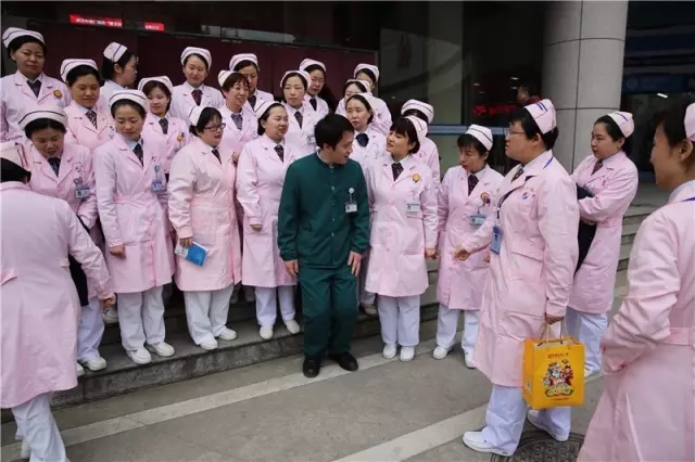 由于医院男护士极少,曹护士长成了护士圈里的特殊人物,每次开完会照合影,他都不知道站哪里好。