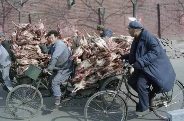 运羊肉的工人,看得一旁的大爷口水直流。