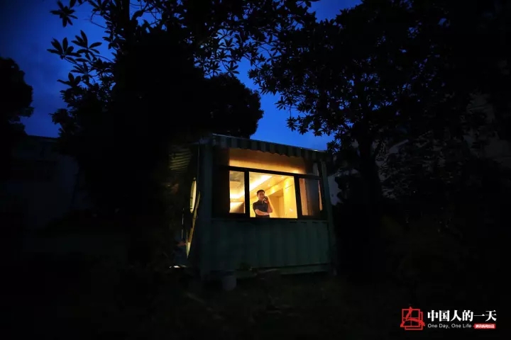 于是租住集成房屋,阮晨海成了江浙沪的第一人。周末,阮晨海坐在集装箱前的台阶上练习吉他,这让他时常想起大学时期的时光。