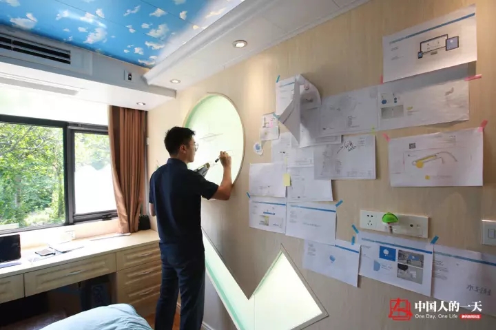 这个“家”还有另一个角色——阮晨海的办公室。在集装箱房的墙壁上,贴满了公司的产品图和一些分析报表。他时常对着这面墙壁研究报告和产品分析。