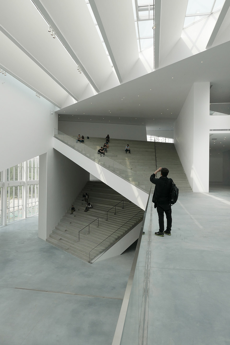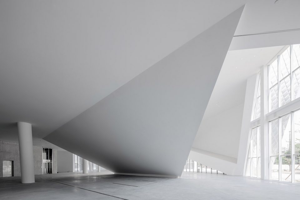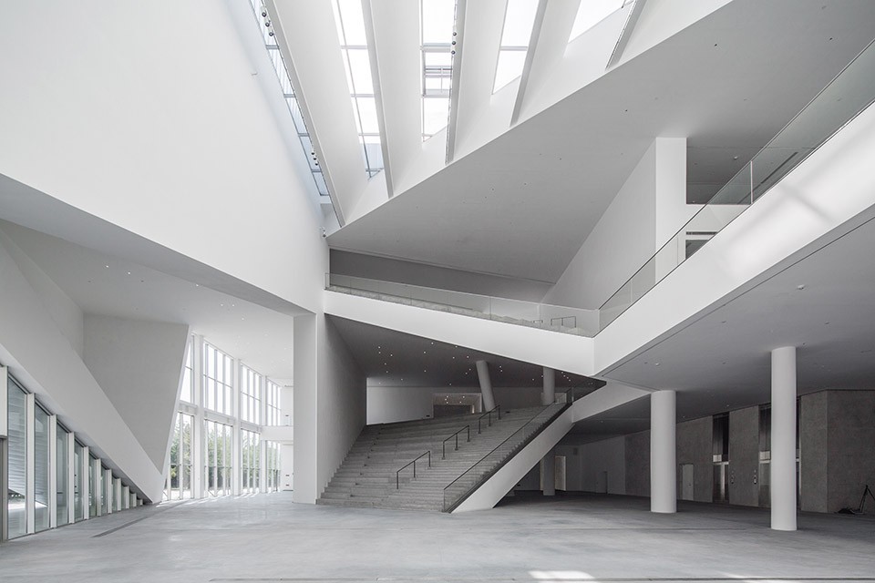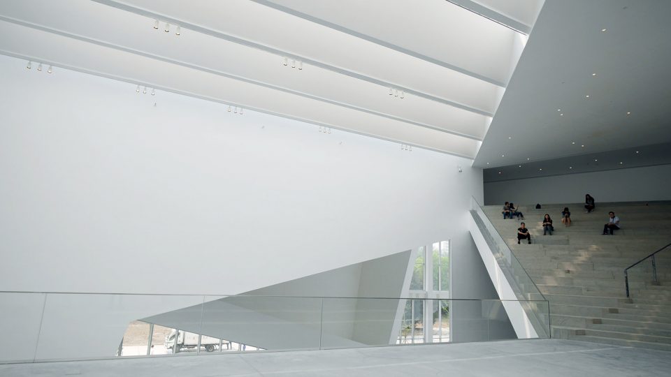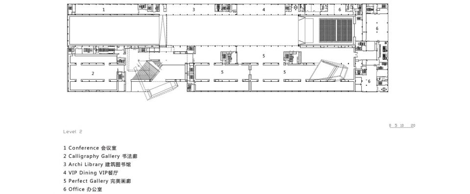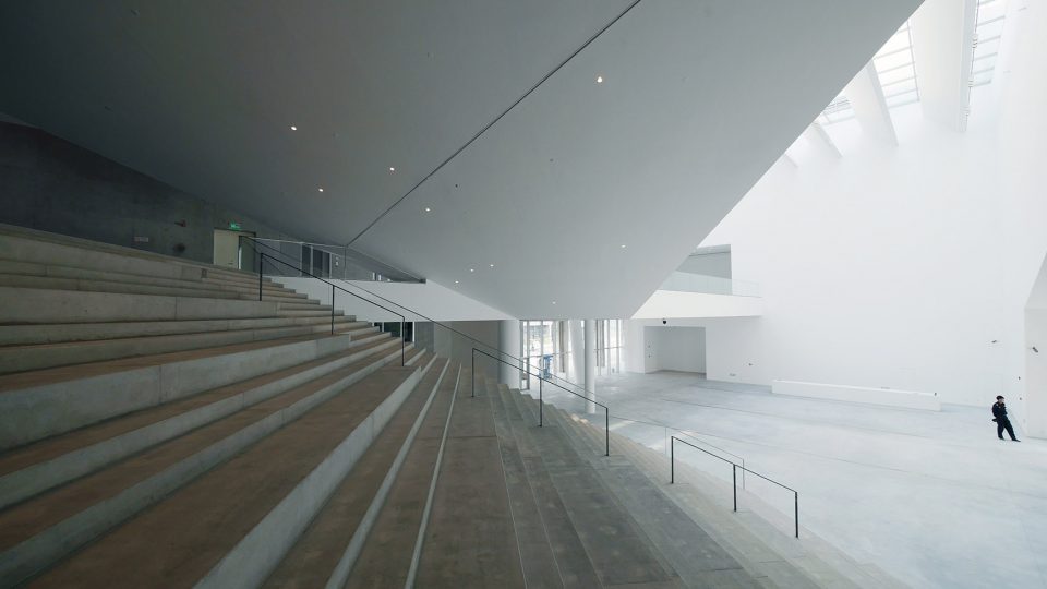 与传统艺术相比,当代艺术的一个显著特征是其表现形式的多元,为了成就这种特征,民生现代美术馆不仅塑造了传统美术馆中5米净高的经典空间,更有大小不一,尺寸各异,层高显著不同的空间:大盒子,中盒子,小盒子,经典空间,院落展览空间,黑盒子(多功能表演,会议,展览空间)去应对不同艺术形式的需求。它们有机地组织在一个充满张力的中心空间周围,结合美术馆前装置公园,屋顶展览平台,中心院落等开放式展览空间,构成一组尺度不同,形态各异的空间组群。