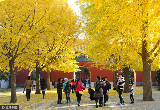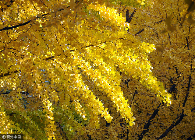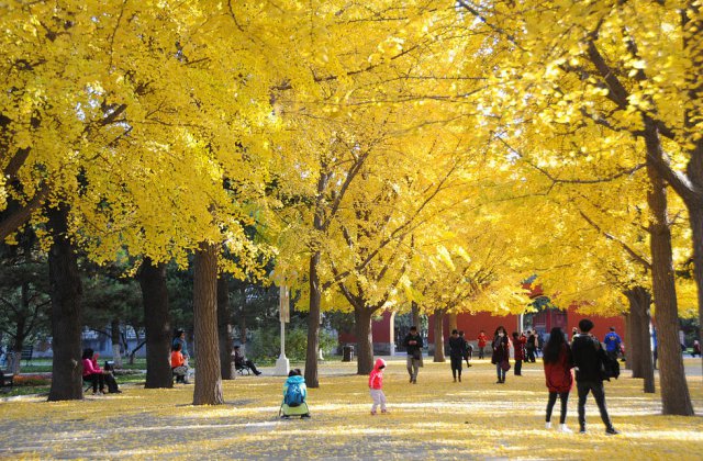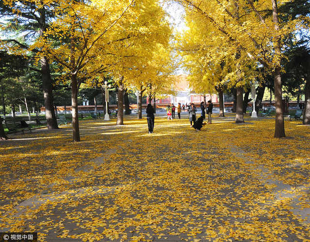北京中山公园银杏大道尽披 " 黄金甲 "