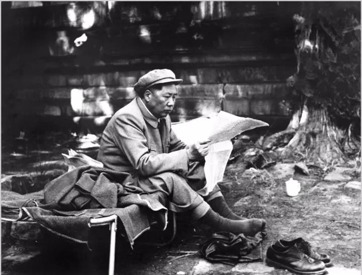 毛泽东畅游湘江之后,在农家门口小憩(1958年 侯波摄)