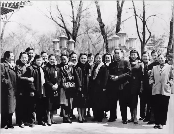 周恩来、邓颖超在中南海会见电影节的女演员(1957年 侯波摄)