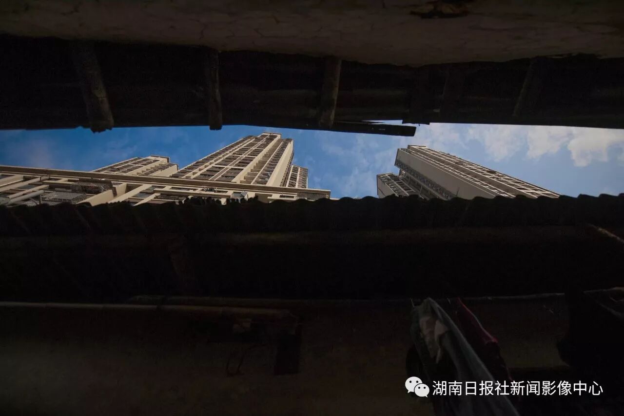 透过屋檐,看相邻的高楼,不知蒋家老屋人心里又是什么滋味?