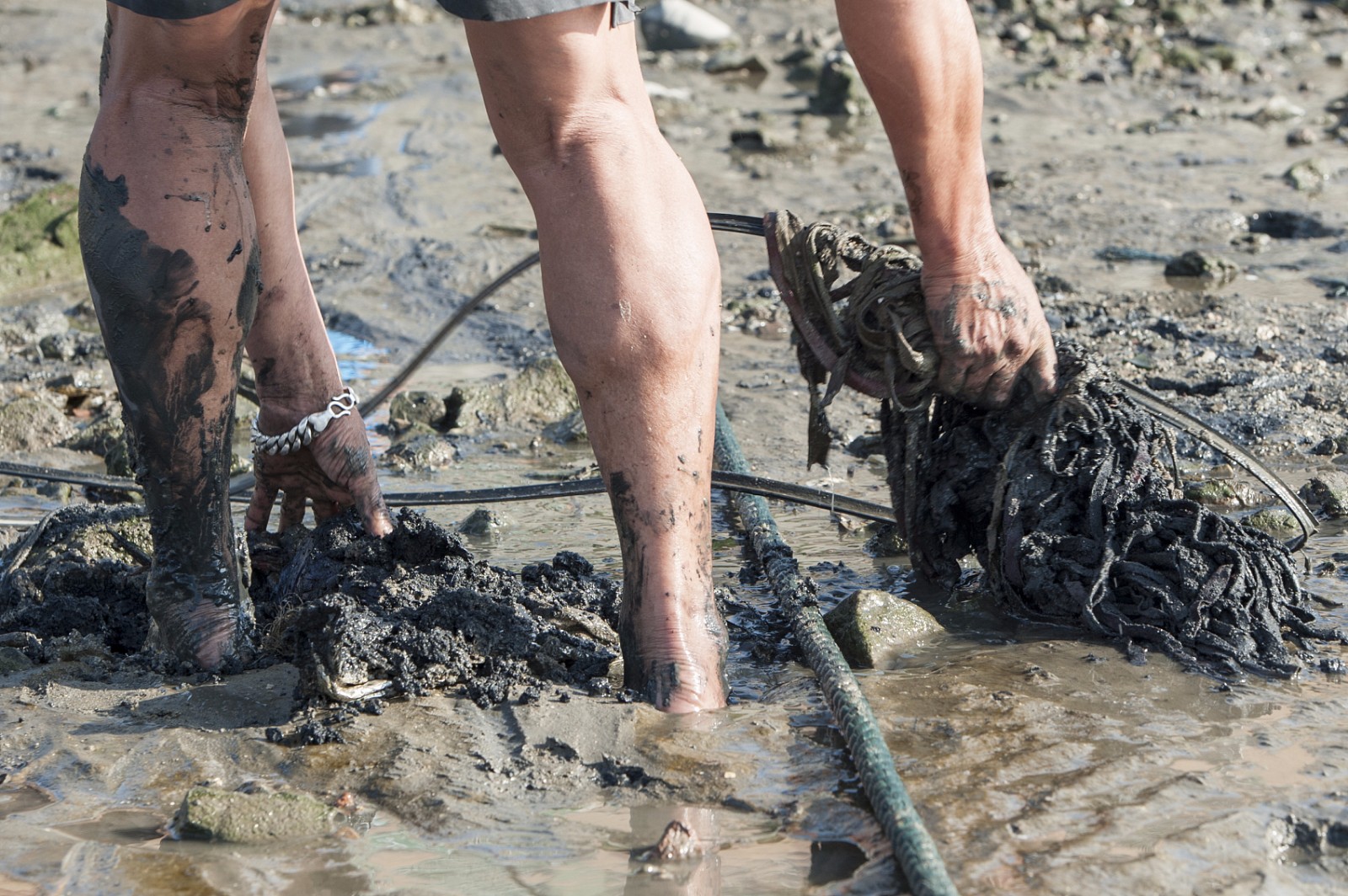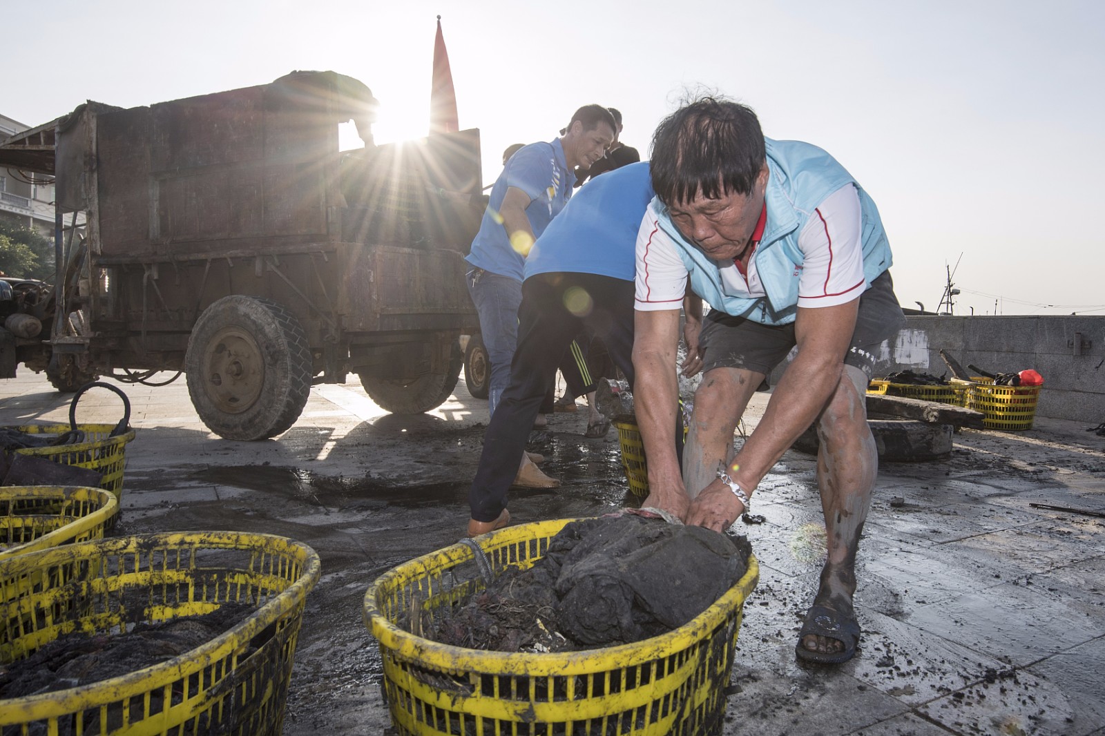 70岁,古稀之年。一位老渔民在这个年纪,用坚持了4年的行动,换来了一片海滩的沙白水净。4年前,蔡加渐,土生土长的老渔民和相濡与沐的妻子陈省华一起,在家乡石狮市祥芝镇东大垵海滩开始了清理海滩垃圾的志愿行动。“我们渔民靠海吃海,我们富了海滩却越变越脏布满垃圾,我看不下去。”每次清理海滩,蔡加渐都是身先士卒。涉过腥臭的淤泥,老蔡在这个几百斤重的废弃轮胎上系上绳索,准备用吊车拖上岸。(来源:视觉中国)