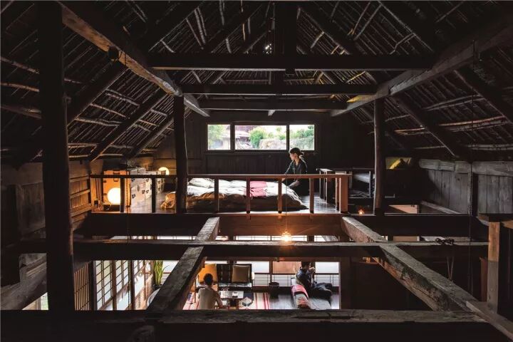 趁着直人先生在布置工作台,我仔细打量着老宅。这是一间全木结构的两层建筑,里、外皆为深棕色,散发着让人沉醉的老时光气息。保要说为了保留建筑的最初模样,大部分的物件都是百年以前就有的,重新制作的窗户、门扇也是修旧如旧,一如百年前的模样。屋内整体空间挑梁高阔,户型规整。通往二层的木梯一踩“吱嘎”作响,让人恍若走入日本大河剧的拍摄现场。