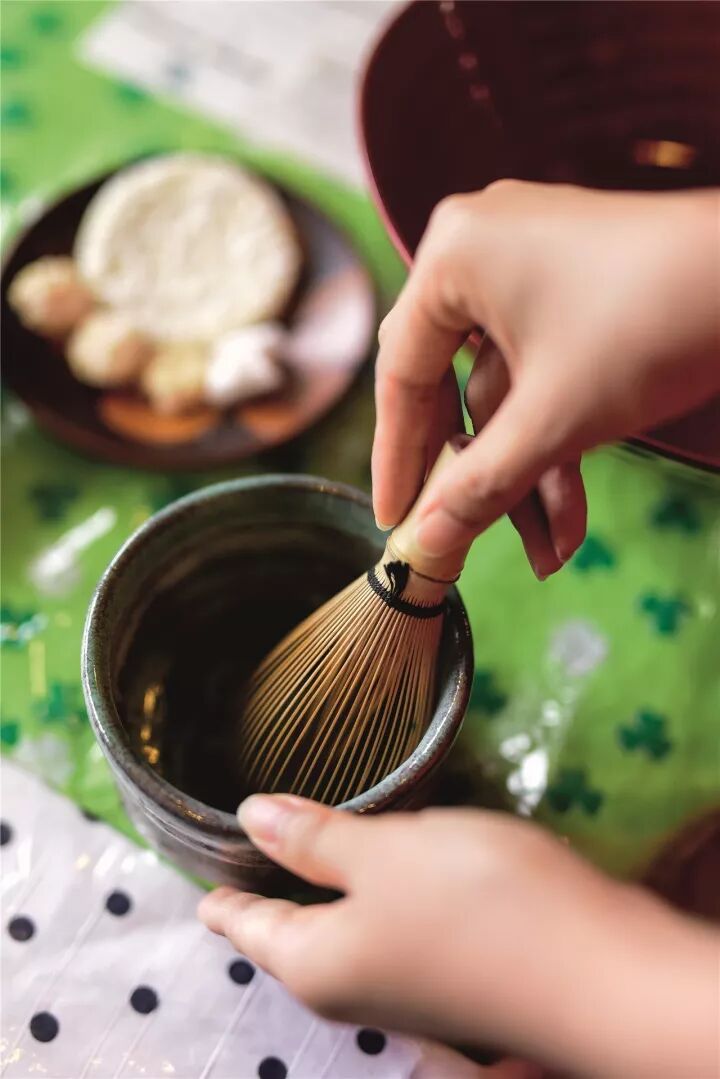 吃茶点也是课程的一部分,与在纪录片里看到的不同,此刻的环境并没有特别古典肃穆,但由香的表情依然一丝不苟。“日本人喝茶非常看重对茶师的尊敬,不管双手接茶碗,还是喝茶前转三次茶碗,以及把茶汤一饮而尽,都是表示对茶师的礼貌。”我们三个人依次按照由香的“指令”,除了不是跪在榻榻米上,其余的细节一个不落。