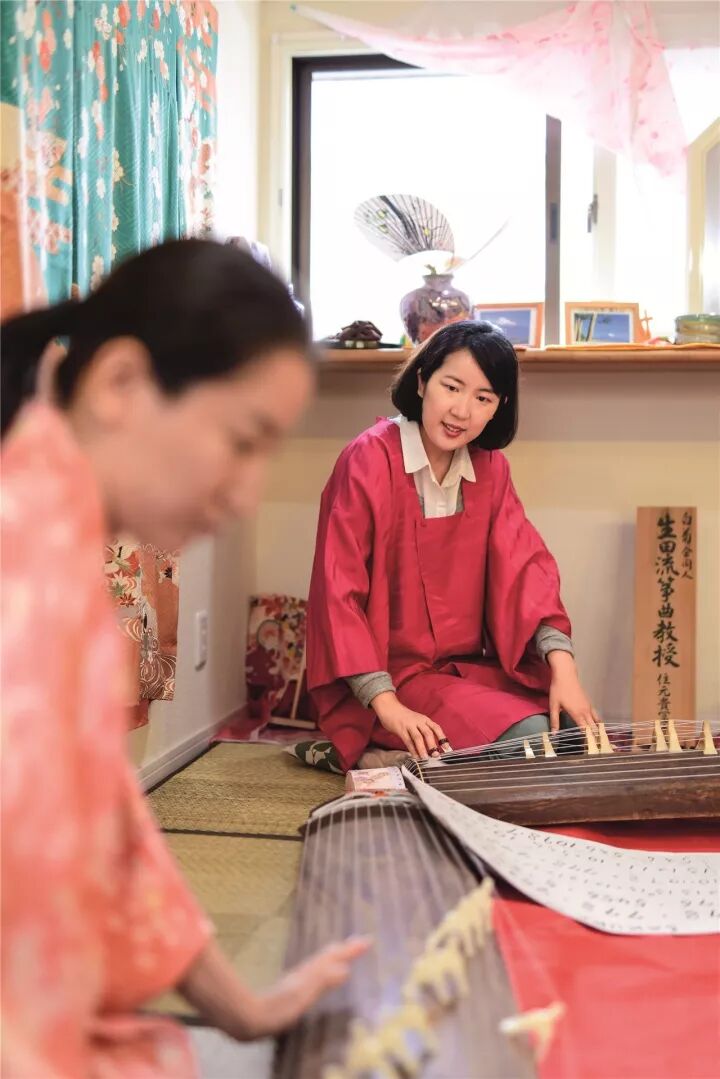帮我开门的是由香的老公政人(Masato),寒暄问好的时候脸上一直挂着又憨又纯的微笑。转身走进不大的客厅,四把十三弦古筝摆成一个“口”子,由香正指着大大的手绘乐谱教两位 女孩子弹琴。