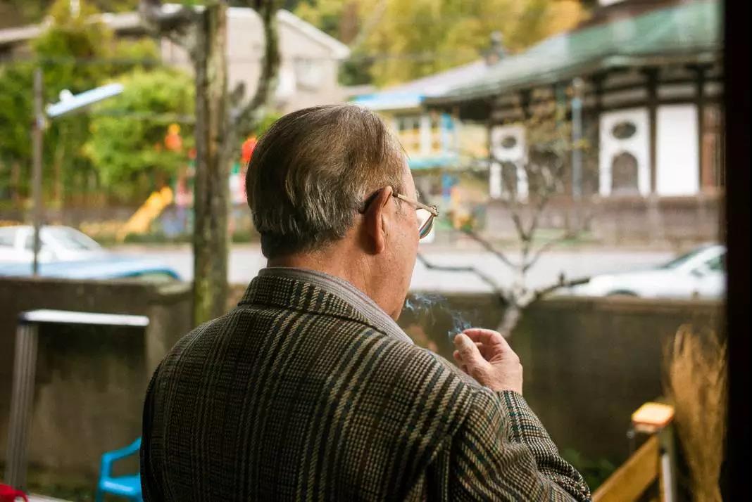 86岁的父亲从来没有停止过吸烟。2017年5月。