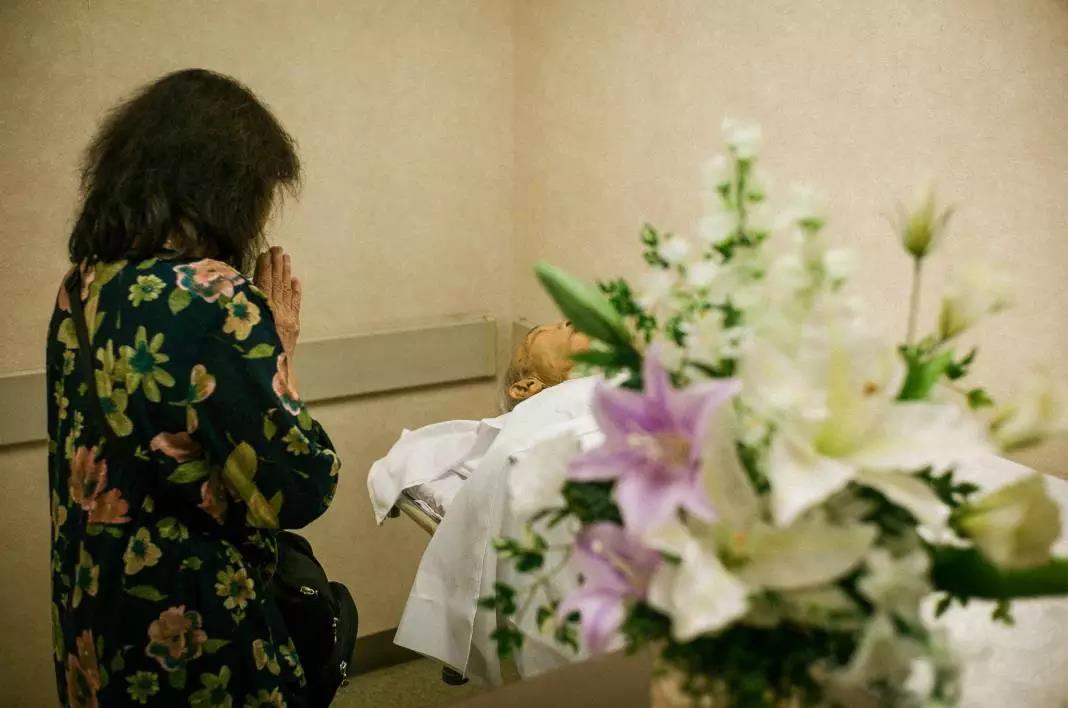 母亲在为父亲祈祷。