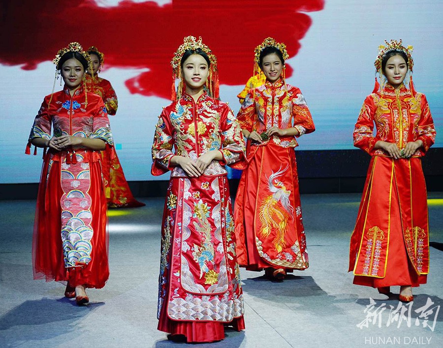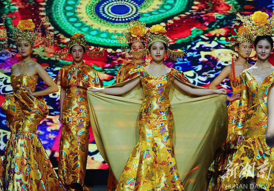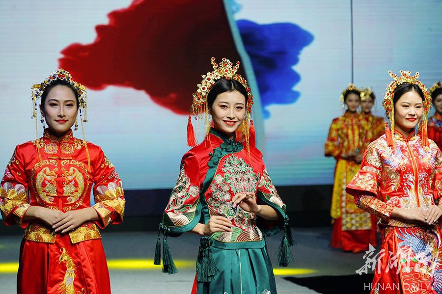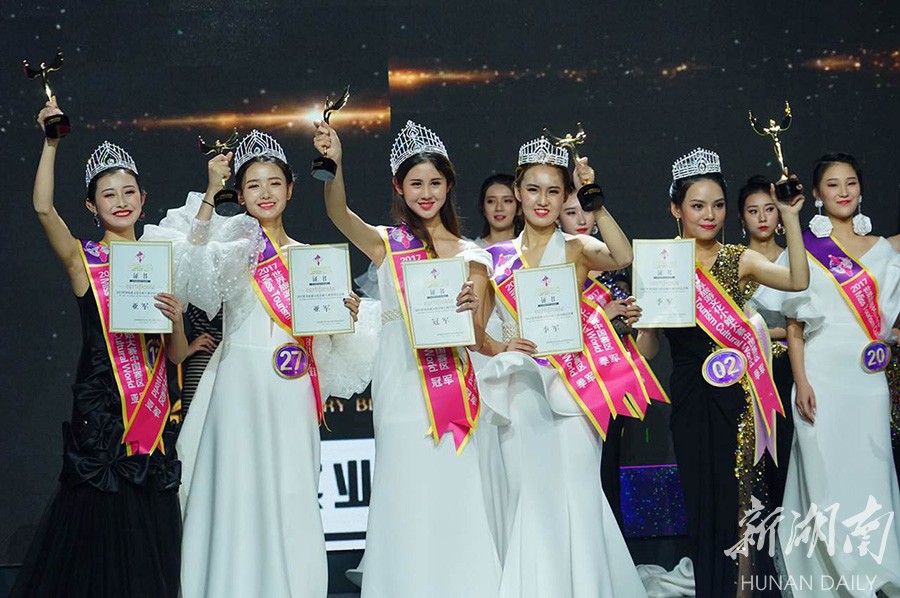 12月24日,参赛佳丽在T台走秀展示自我风采。当晚,2017世界旅游文化小姐中国总决赛在长沙举行,从全国各地脱颖而出的30强选手进行了古装秀、中式嫁衣秀、比基尼秀、晚礼服秀等T台展示。经过激烈角逐,来自南京的19岁女孩万禹涵摘得桂冠。湖南日报记者 徐行 通讯员 李云鹏 摄影报道