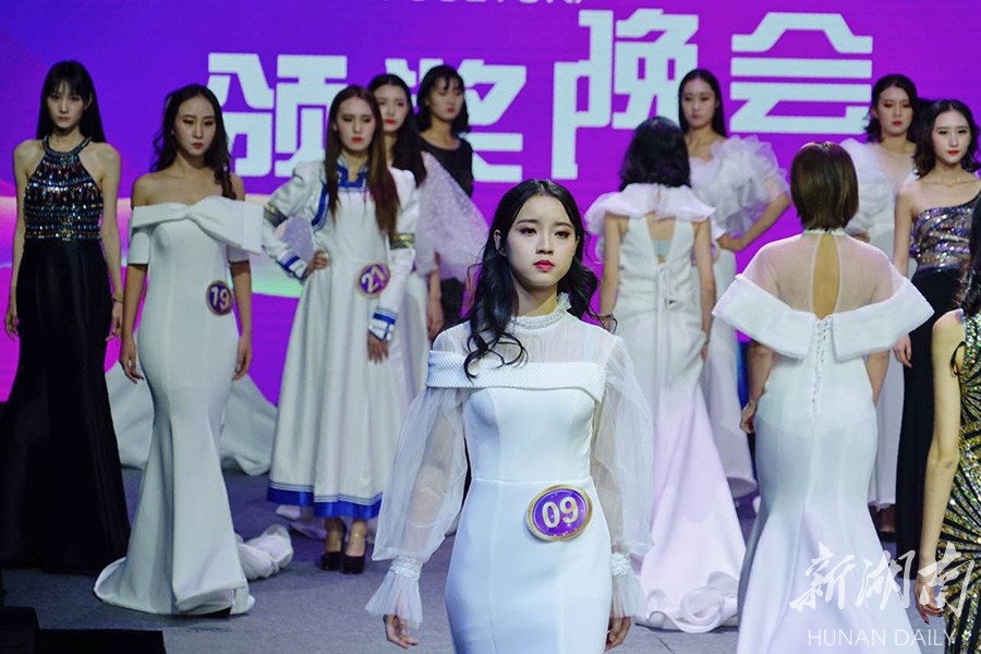 12月24日,参赛佳丽在T台走秀展示自我风采。湖南日报记者 徐行 通讯员 李云鹏 摄影报道