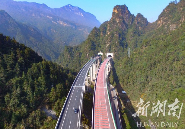 12月31日,湖南省张(张家界市)桑(桑植县)路段高速公路,正式建成通车。据了解,张桑高速起于桑植县西北洪家关乡南岔,终于张家界市西的蒋家庄,全长46.95公里,路基宽度24.5米,设计时速100公里每小时,建设总工期为48个月。新湖南客户端记者 向韬 摄影报道
