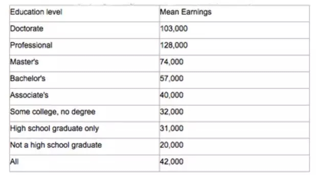 ▲Table1:Mean Earnings by Highest Degree Earned,$:2009(SAUS,table232)