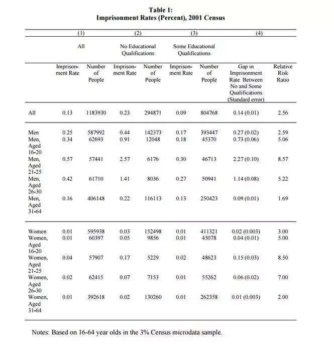 这份统计数据来自答主本校,显示的是英国的犯罪率与受教育程度关系,最后一行显示相关率,数值越大表明相关性越高,可见在21-25岁的成年男子群体中,未受教育群体比受教育群体受徒刑率高出8.57倍,犯罪乃至受徒刑可以说是道德水平低下的极致体现了,8.57倍的差距意味着什么不言而喻。用先贤的话说,教育剥离掉人野兽的一面。