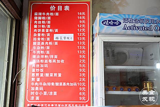 起名为矮子听说是老板自嘲的叫法,粉店内有肉丝、牛肉、牛杂等码子,旁边会有酸豆角、酸菜、萝卜和油渣等配菜。