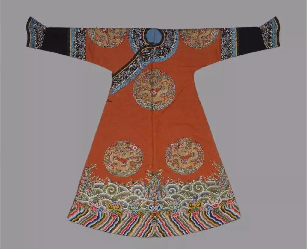 设计灵感来源:杏黄色缎缀绣八团云龙女夹龙袍