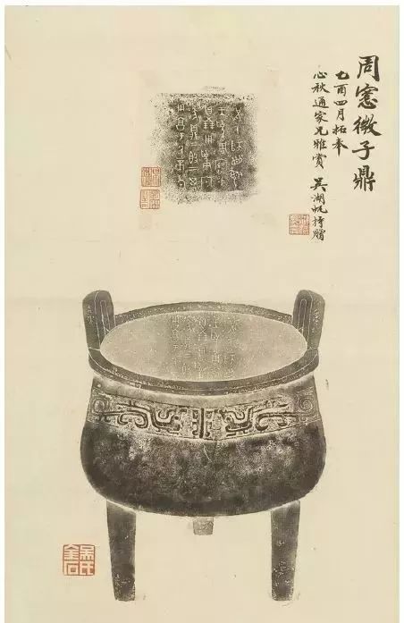 鼎口内侧铸铭文五行二十八字,记载师眉荐于王,为周客,王赏赐贝五朋,师眉为此铸造二鼎二簋之事。在诸多青铜器中,吴大澂最珍爱的是一件名叫“愙(音客)鼎”的青铜鼎,“愙斋”的名字即来源于此鼎。