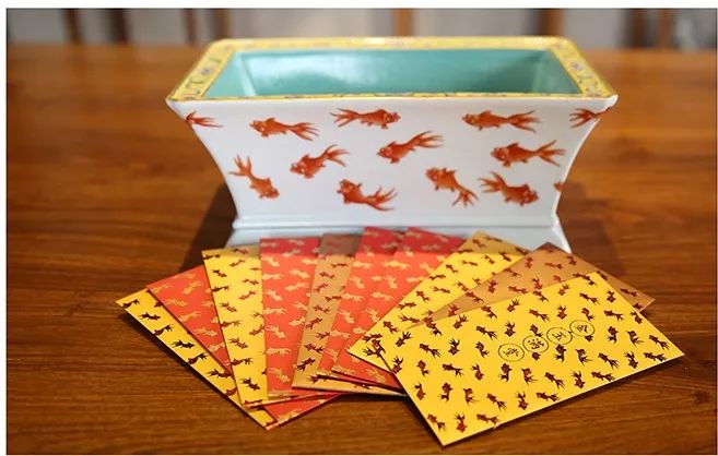 设计灵感来源:【红彩金鱼纹长方形花盆】