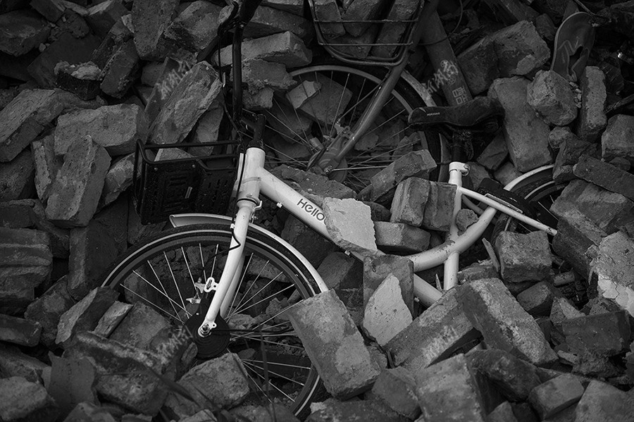 共享?共殇!2017年8月6日6:47,长沙里仁坡巷。大多数共享单车企业为了跑马圈地,都将注意力放在了拓展市场、投放新产品上,忽略了对所投放车辆的理性运营和科学运维。而这正成为影响共享单车发展的最大障碍。据不完全统计,截至2017年7月,全国共有互联网租赁自行车运营企业近70家,累计投放车辆超过1600万辆,目前大部分城市出现了共享单车过剩现象,共享单车企业倒闭潮已经来临