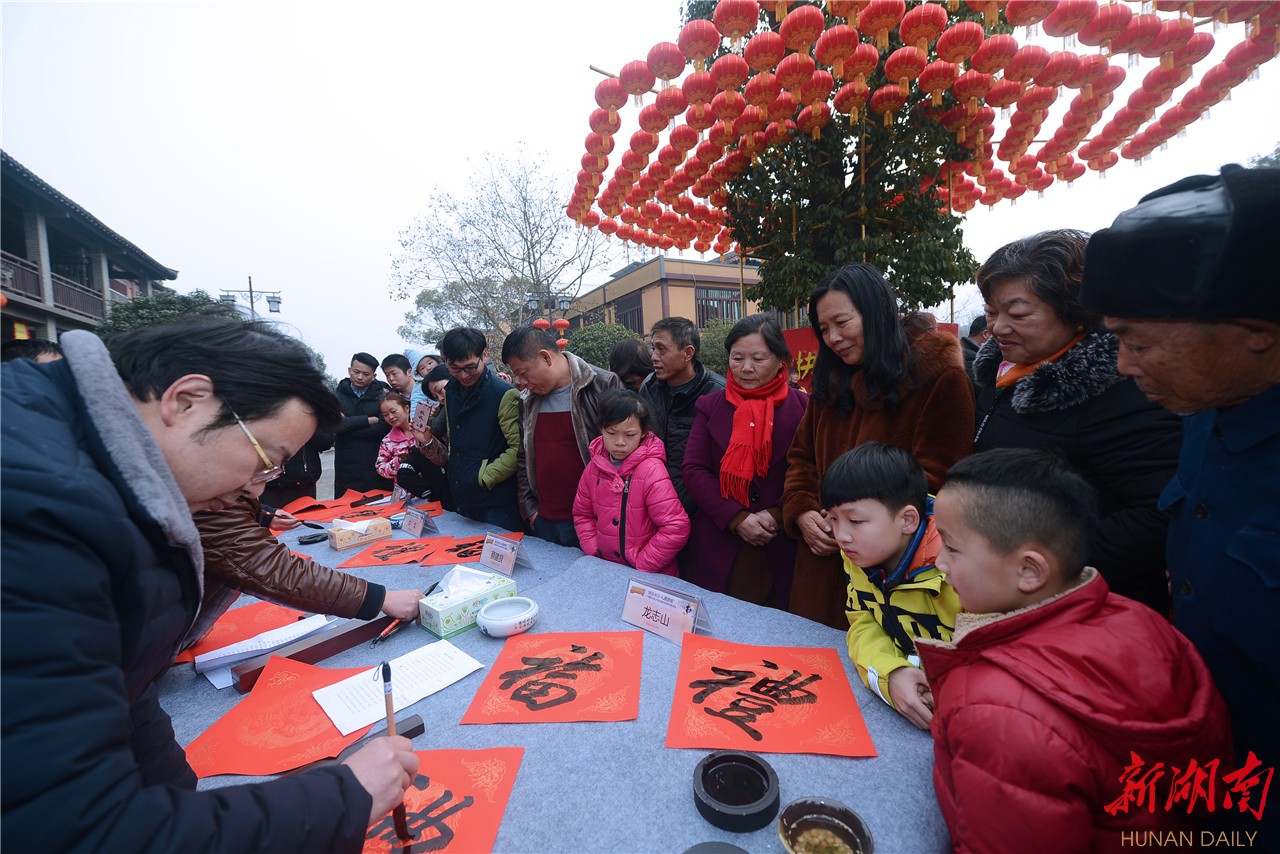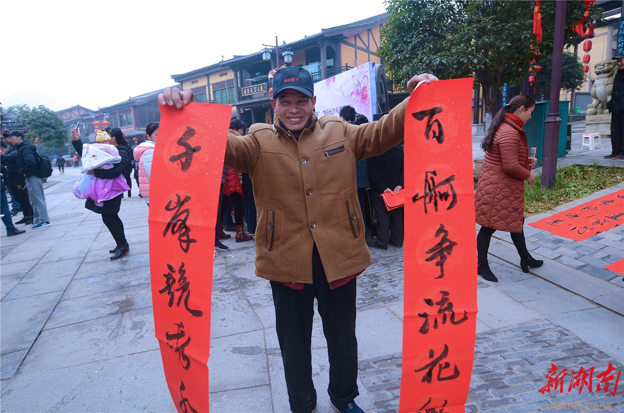 “百舸争流花似锦,千峰竞秀水如银”,61岁的戴志明家住附近的何桥村,听闻今天书法家们现场送春联,特地赶过来请题了这对春联,他说要挂在家里大门口,激励子孙们勤奋学习、努力工作、争当先锋。新湖南客户端记者 范远志 谢璐 通讯员 刘赛 摄影报道