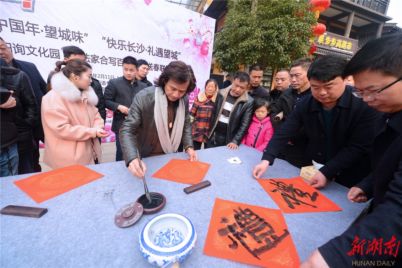 2月11日上午,在长沙市望城区铜官街道书堂山的欧阳询文化园,来自省市区的数十名著名书法家为市民、游客义务题写百礼贴及福字、春联,为即将到来的新年增添了一抹中华传统文化韵味。新湖南客户端记者 范远志 谢璐 通讯员 刘赛 摄影报道