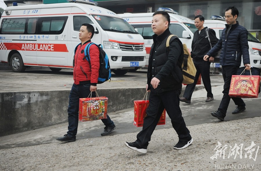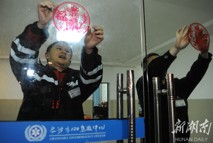 “喂,你好,病人是中风吗?请让他平躺,不要摇晃搬动,我们马上赶到!”2月15日17时25分,刚刚进班的120急救车医生陈俊辉坐在飞驰的救护车上和患者家属沟通,10分钟后,他们赶到患者住处,将患者送往医院。除夕夜,记者来到长沙市中心医院120值守分站,探访这些坚守岗位的人。