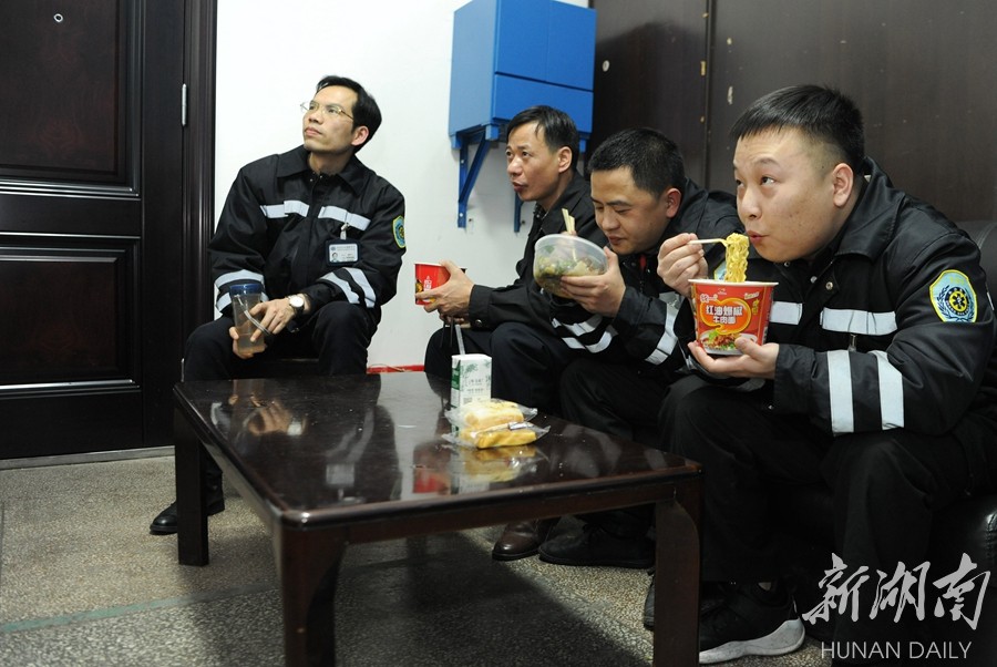 2月15日19时24分,长沙市中心医院120值守分站,一碗泡面就是120急救人员的年夜饭。