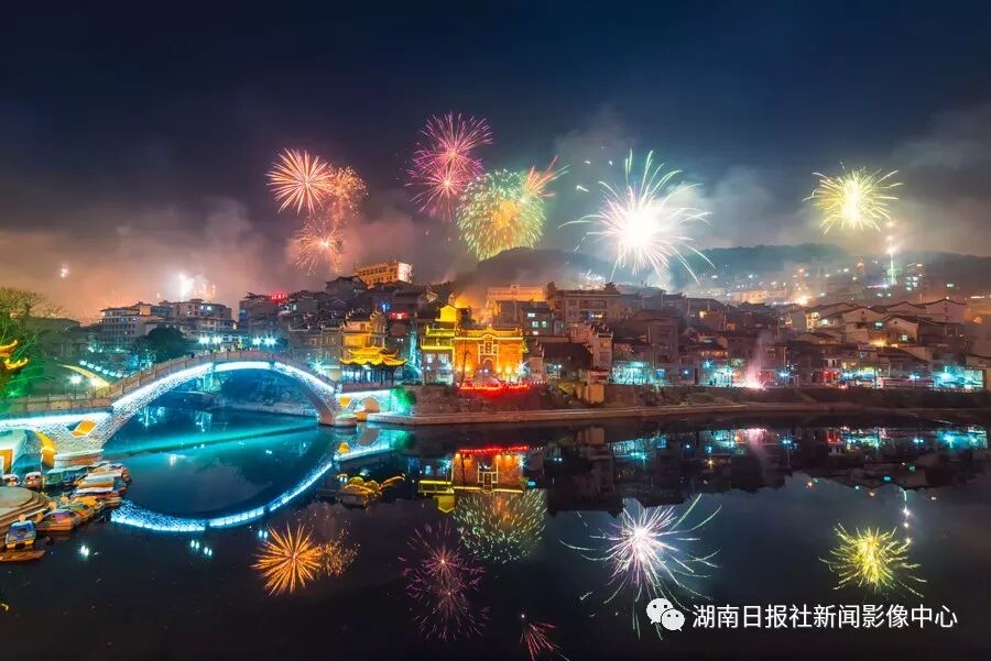 吉首市峒河公园新年烟花。