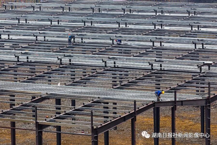 湘西经济开发区,工人正在新建厂房。