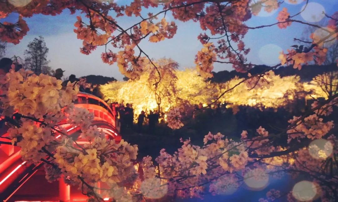 ■线路:从武汉大学正门进,是“国立武汉大学”牌坊,走进去便有到湖滨的校车,上车后到樱园下。从教二旁的鲲鹏广场开始,一直绵延到行政大楼附近,其中以樱顶老斋舍最佳。从八十八级台阶上去,可以高处观望樱花繁盛全景。