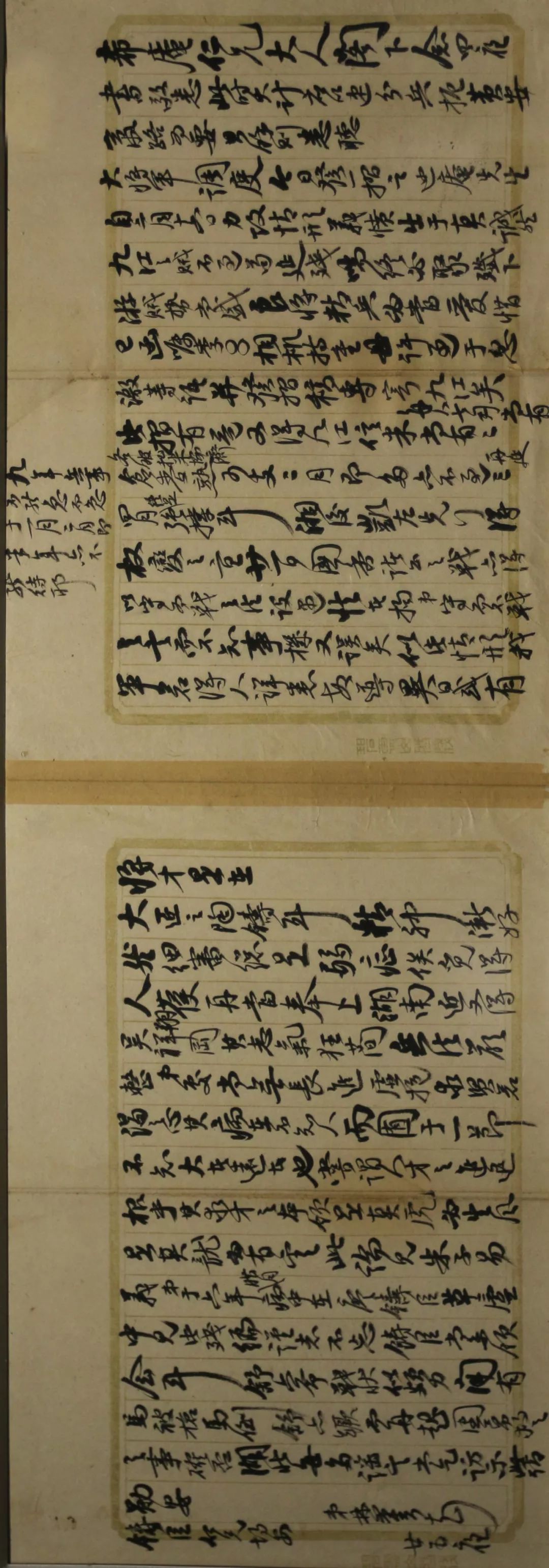 正月节前后,尚乞大驾来鄂,迪公一人太劳也。公在鹦鹉〈州〉(洲)失去衣表,近日城乡窃风大起,实官吏之耻也。此致。