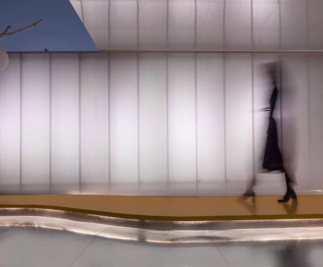 通过消解材料的物性,我们希望在物理空间中创造一种失去材料质感和空间指向的场所。选用在“一个人美术馆”案子中使用过的碳酸酯高分子材料,结合光照,创造一种失去体积和质感的场所体验。泡泡,无色透明,会折射彩虹,也稍纵即逝,无法捉摸,但孩子们乐此不彼。儿童餐厅应该是个polycarbonate neverland( 聚碳酸酯板梦幻岛)。