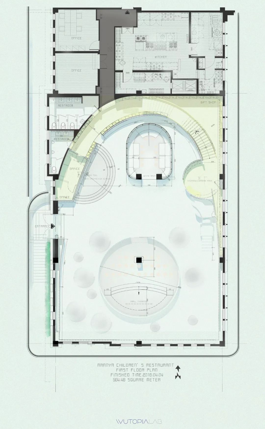 Wutopia Lab受阿那亚委托将会所一翼改为儿童餐厅。我们希望在这不足1000平米的空间内,为孩子们创造一个neverland(梦幻岛)。