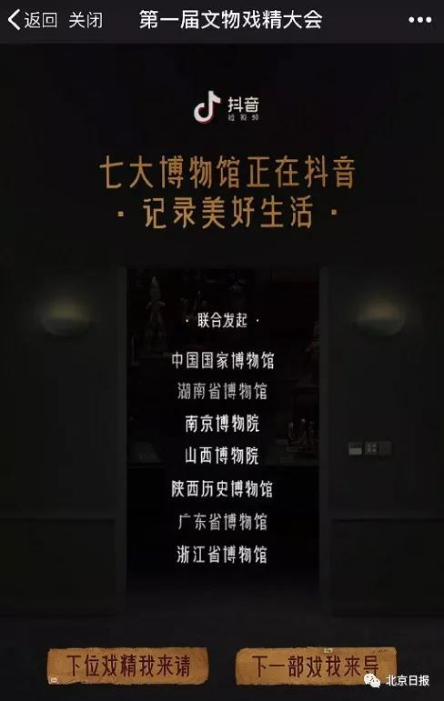 博物馆日前夕, 国家博物馆携手六大博物馆,玩起了抖音;大钟寺博物馆、孔庙和国子监博物馆等市属博物馆则发出专属自己的声音……