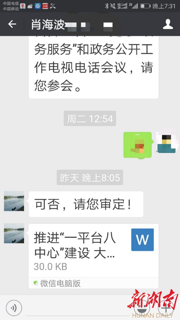 相关信息显示,6月22日下午6时31分至晚上8时2分,肖海波与李钢彪在微信上调度处置一起网民反映事项;晚上8时5分,肖海波通过微信向胡志文报告“一平台八中心”警务机制改革进展情况;晚上8时44分,肖海波通过微信向市委主要领导报告安保维稳工作。