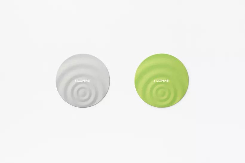 Nendo 为了增加产品与消费者的接触点,还设计了与瓶子具有相同纹理的玻璃杯和具有波纹图案的杯垫。搭配使用,两者相得益彰~