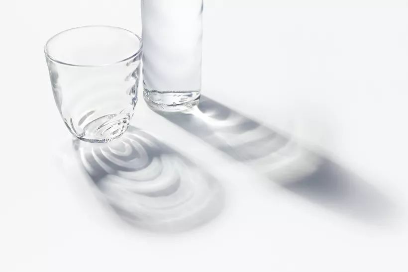 参考这种天然的现象, Nendo 设计了一个容量为 300 毫升的玻璃瓶,覆盖着涟漪的图案,以传达出瓶装水新鲜泉水般的活力。
