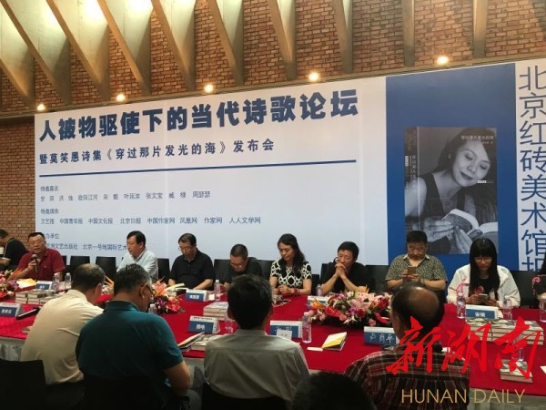 湖南日报·新湖南7月29日讯(记者 徐亚平)7月28日,“人被物驱使下的当代诗歌”论坛暨莫笑愚诗集《穿过那片发光的海》发布会,在北京红砖美术馆举行。诗人周瑟瑟、叶延滨、欧阳江河、臧棣、安琪、洪烛等认为,莫笑愚的写作揭示了人在技术时代的命运,具有超越性别与日常生活经验之外的精神的力量;她的诗歌构建了一条通向生与死的秘密通道。