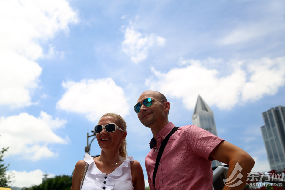 图为一对外国游客在南京路参观。
